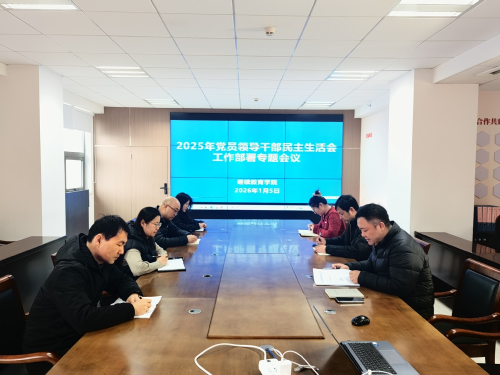 为深入学习贯彻习近平新时代中国特色社会主义思想,全面落实党的二十届四中全会精神及学校党委关于2025年度民主生活会的工作要求,扎实做好2025年度民主生活会准备工作,2026年1月5日,继续教育学院在综合楼914会议室召开专题部署会议。继续教育学院全体党员参加会议,学院党支部书记王朔主持会议。
