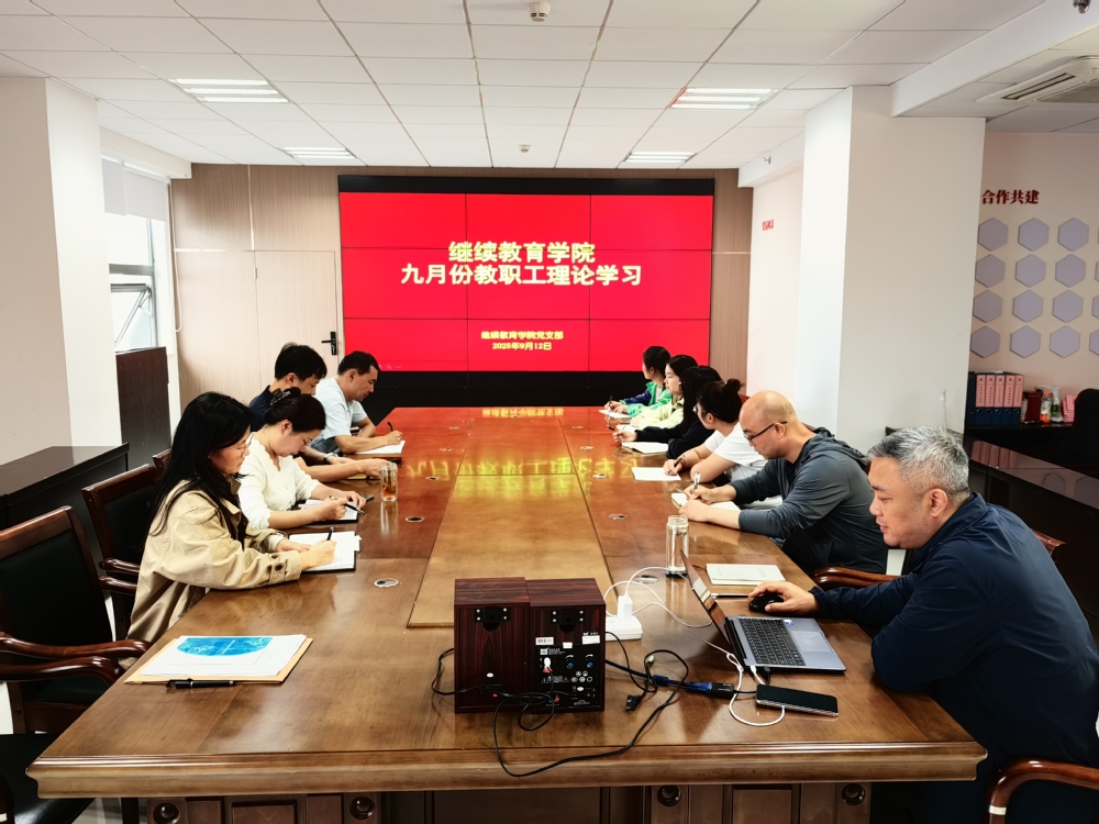 2025 年9月12日,继续教育学院党支部在云龙校区综合楼914会议室组织召开了九月份第一次职工集中学习会议。本次会议由继续教育学院院长王朔主持,全体职工参加了学习。