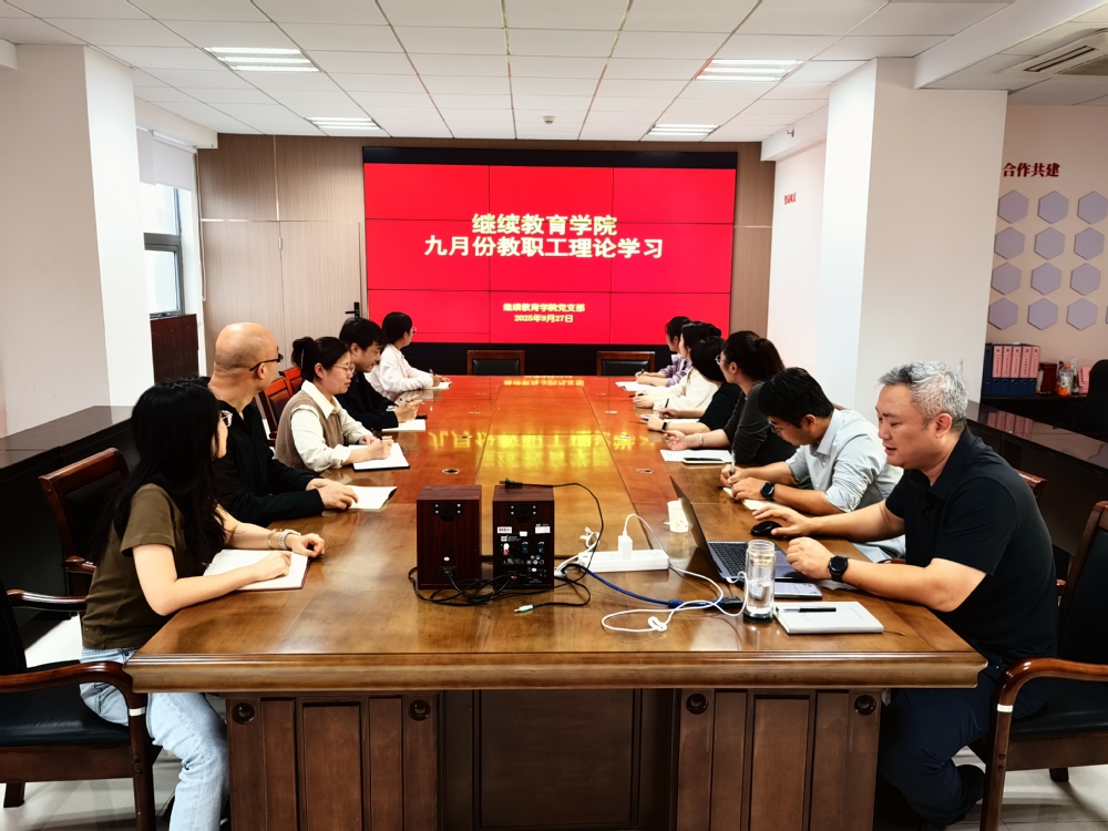 2025 年9月27日,继续教育学院党支部在综合楼914会议室召开了九月份第二次职工学习会议,会议由党支部书记王朔主持。