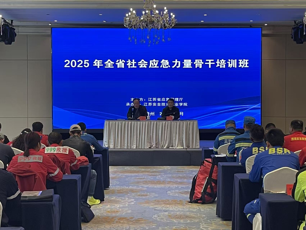 10月23日,由江苏省应急管理厅主办、江苏安全技术职业学院承办的2025年全省社会应急力量骨干培训班在泰州天德湖宾馆顺利开班。来自全省13个设区市的111名社会应急力量骨干队员参加了为期三天的系统培训。