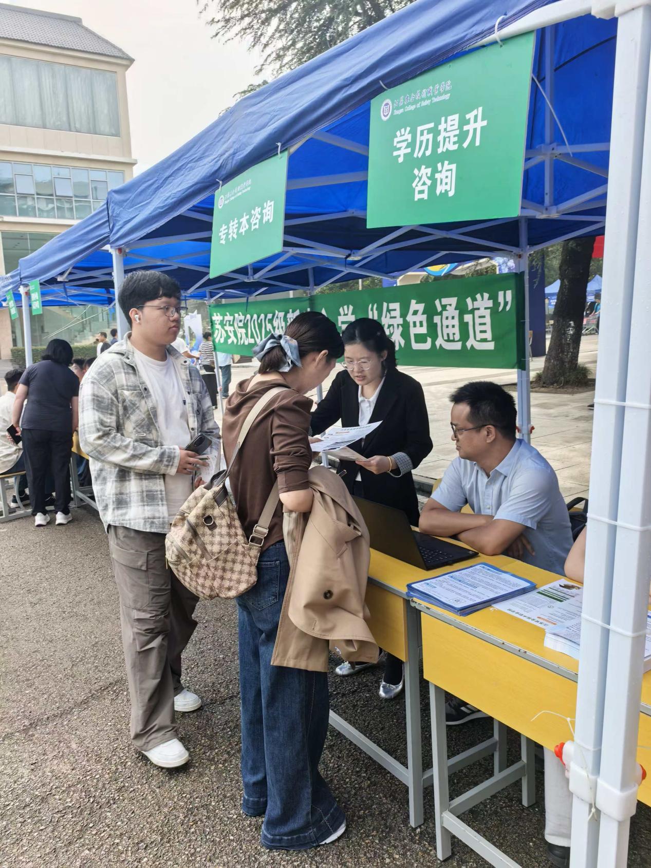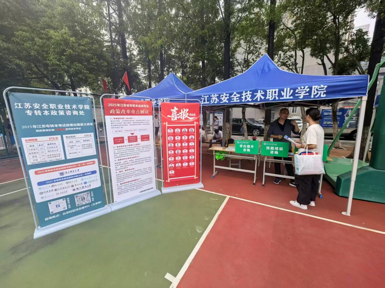 新学期伊始,江苏安全技术职业学院继续教育学院聚焦学生学历提升刚需,扎实推进“为学生办实事”实践活动,在贾汪、云龙两校区同步搭建开学咨询展台,不仅精准解读“专转本”政策干货,更全面推介学院专属“专转本”培训课程,把升学备考的“加油站”直接建到学生身边,让服务更接地气、更暖人心。