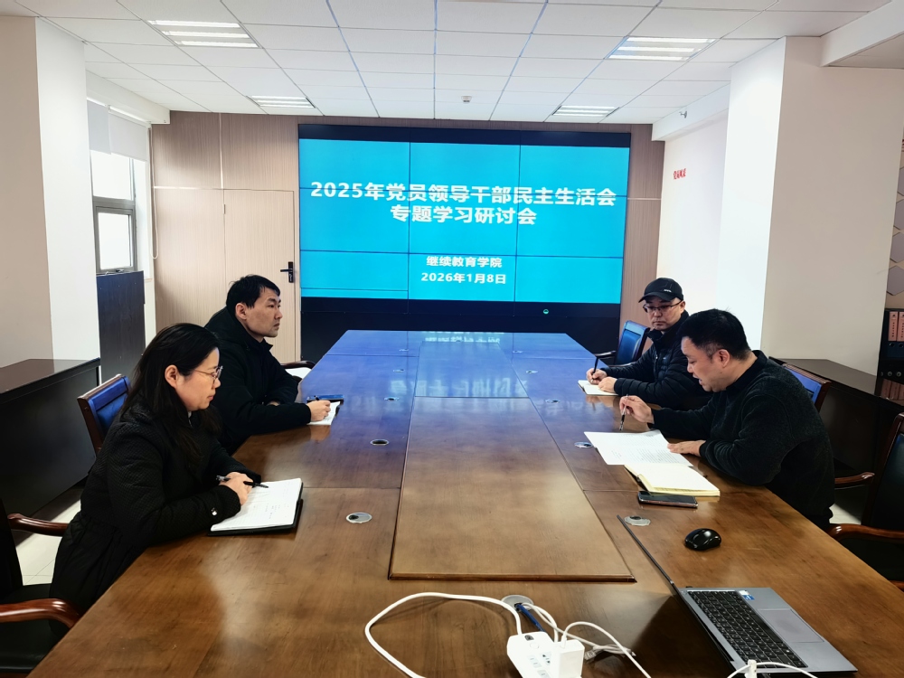 为深入学习贯彻习近平新时代中国特色社会主义思想,巩固深化党纪学习教育成果,切实筑牢2025年度民主生活会思想根基,2026年1月8日上午,继续教育学院在综合楼914会议室召开专题学习研讨会。学院党支部全体党员干部参加会议,党支部书记王朔主持会议。