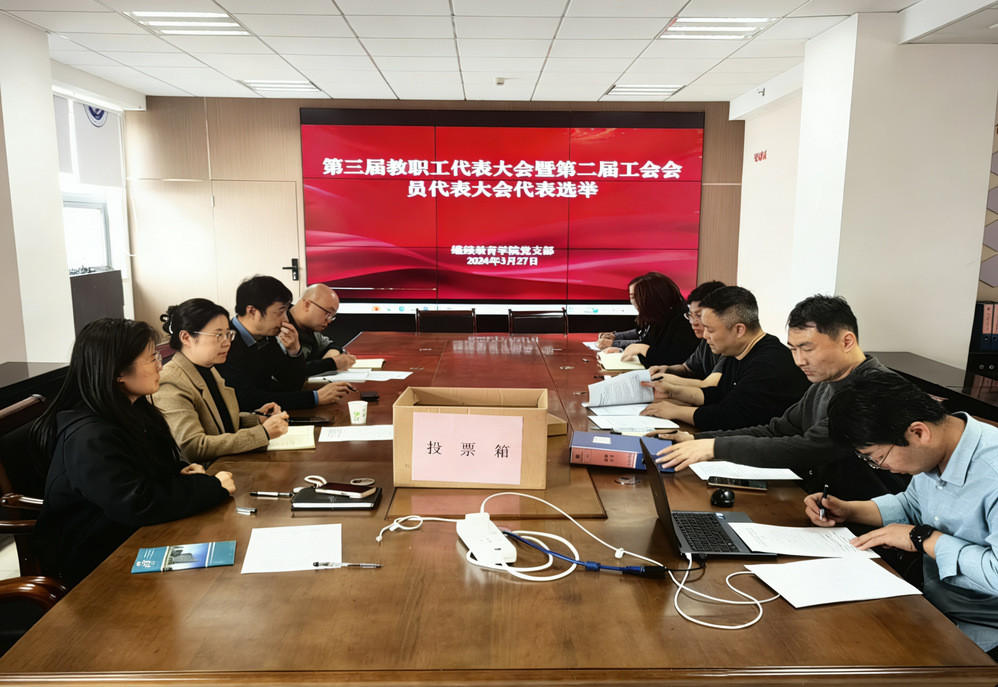 3日27日,继续教育学院召开全体职工大会,圆满完成第三届职工代表大会代表选举工作。